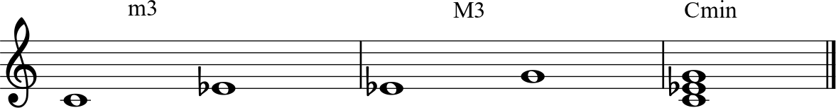 2. You can have a Minor Third on the bottom, with a Major Third stacked on top, Like this: